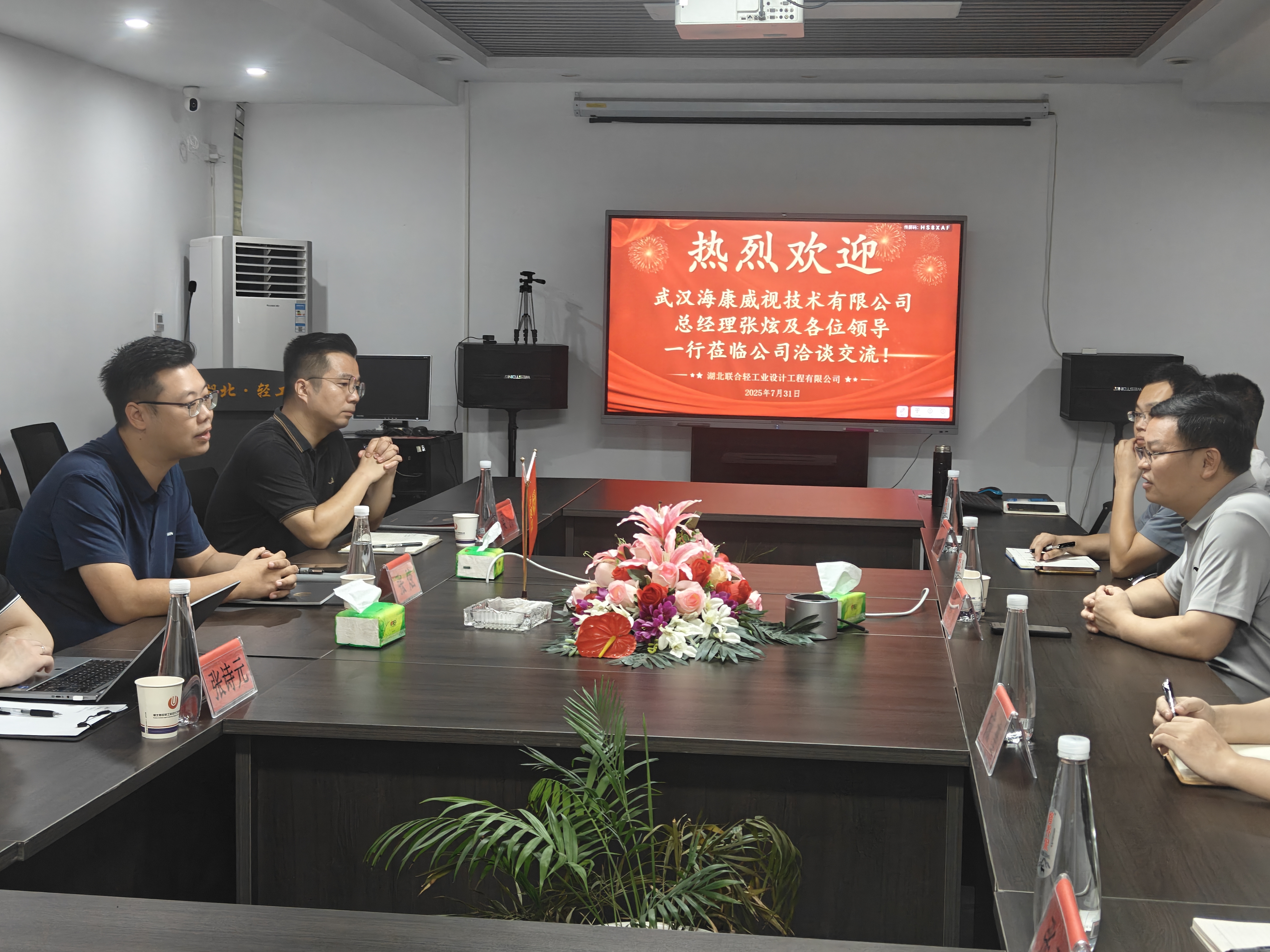 7月31日,武汉海康威视总经理张炫率领核心团队到访湖北联合轻工,双方围绕食品工厂场景数字化应用、海康机器人食品行业解决方案以及新型技术生态合作搭建展开交流,我司总经理梅勇及经营班子领导共同参与座谈。